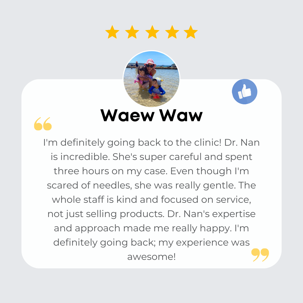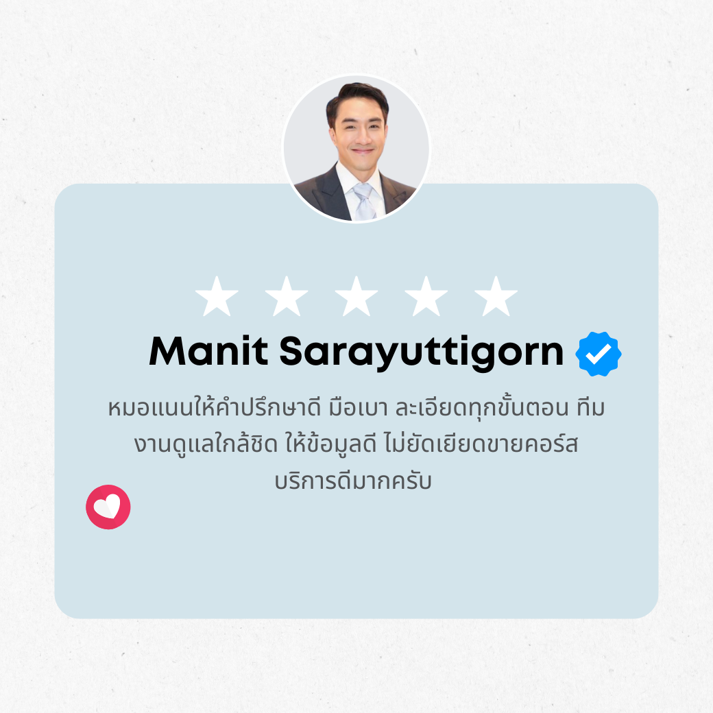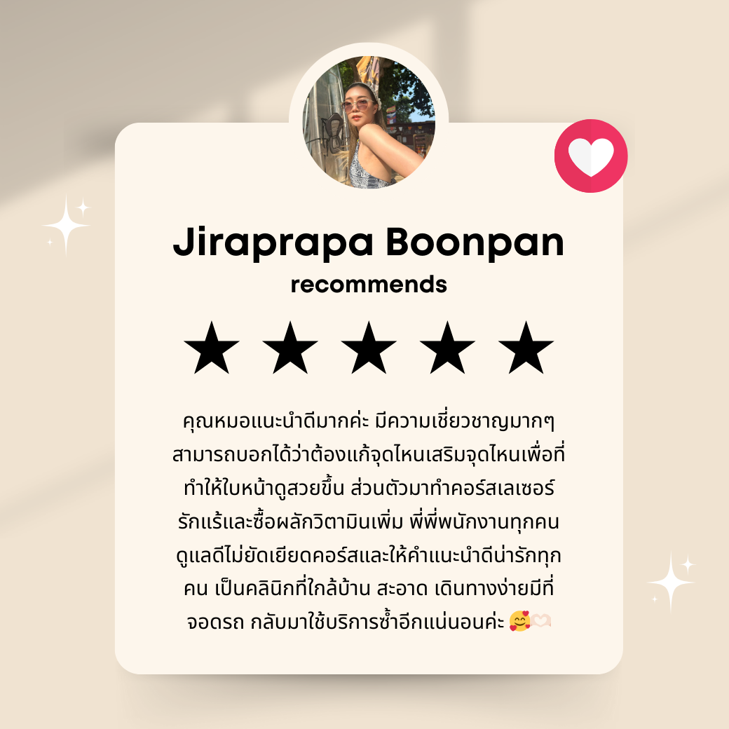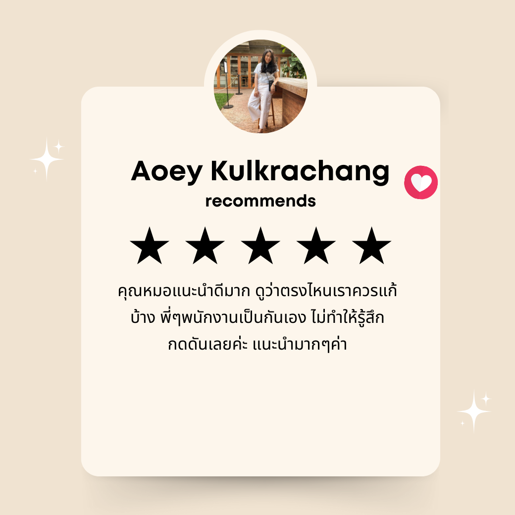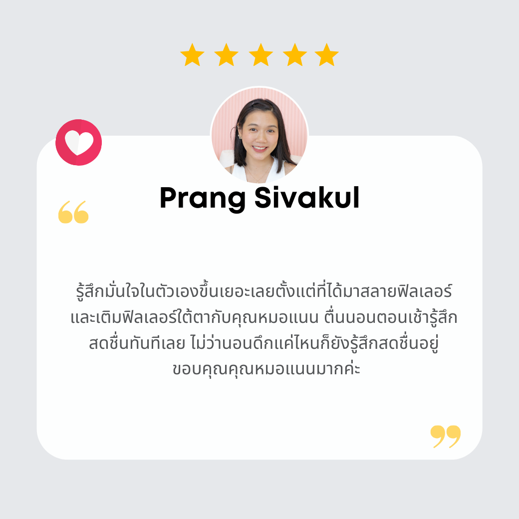 คุณหมอแนนจะวิเคราะห์โครงหน้าเฉพาะบุคคล ให้ความรู้ คำปรึกษาทุกครั้งจนกระทั่งคนไข้เข้าใจและมั่นใจในการรักษา โดยคลินิกได้คัดสรรผลิตภัณฑ์คุณภาพ เทคโนโลยีที่มาตรฐาน ยาแท้ที่ผ่านอย.ไทยและต่างประเทศ